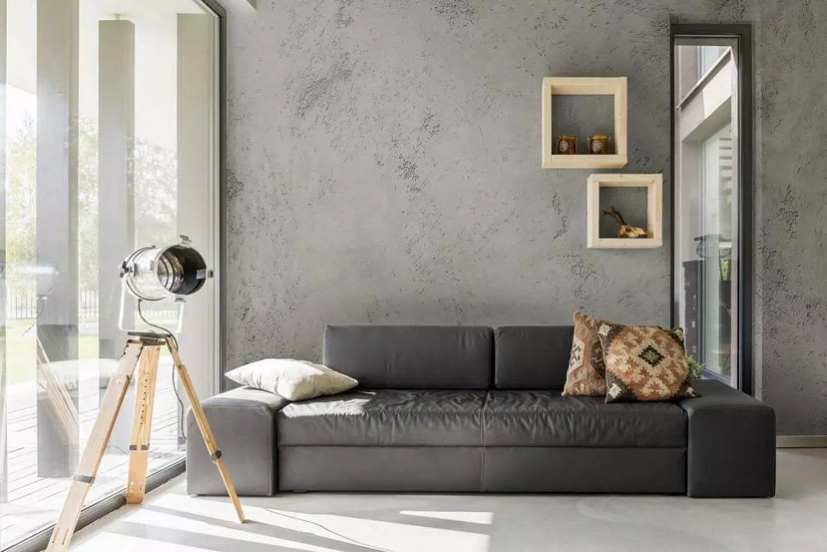 Art Beton — идеальный вариант для тех, кто ищет декоративную штукатурку для внутренней отделки комнаты в стиле лофт. Готовое покрытие может иметь вид отшлифованного или, наоборот, необработанного бетона. Штукатурка легко наносится на любые минеральные поверхности, а для задуманного эффекта вполне достаточно одного слоя. При этом материал имеет экономичный расход и даёт возможность использовать различные техники нанесения.