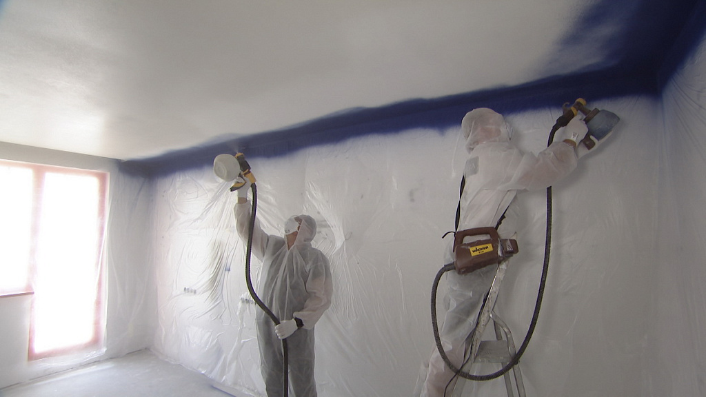 Градиентную покраску на потолке выполнили с помощью краскопульта краской для стен и потолков Wall&Ceiling Olsta. Краска акриловая, при нанесении почти не пахнет, наносится без подтеков. И небо над головой у мальчишек всегда будет синим.