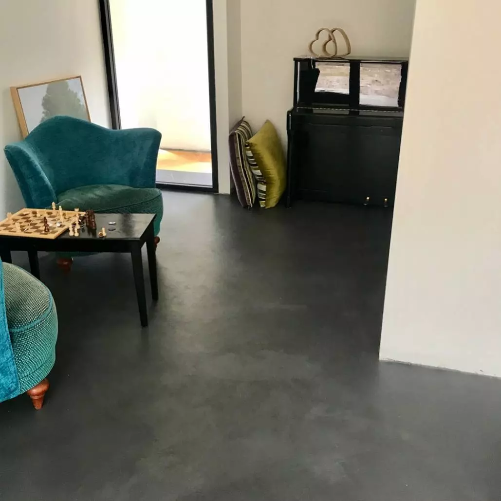 Отсутствие швов и стыков. В отличие от наборных материалов, микроцемент для пола легко адаптируется к планировке, поэтому подходит для помещений разных размеров и форм.