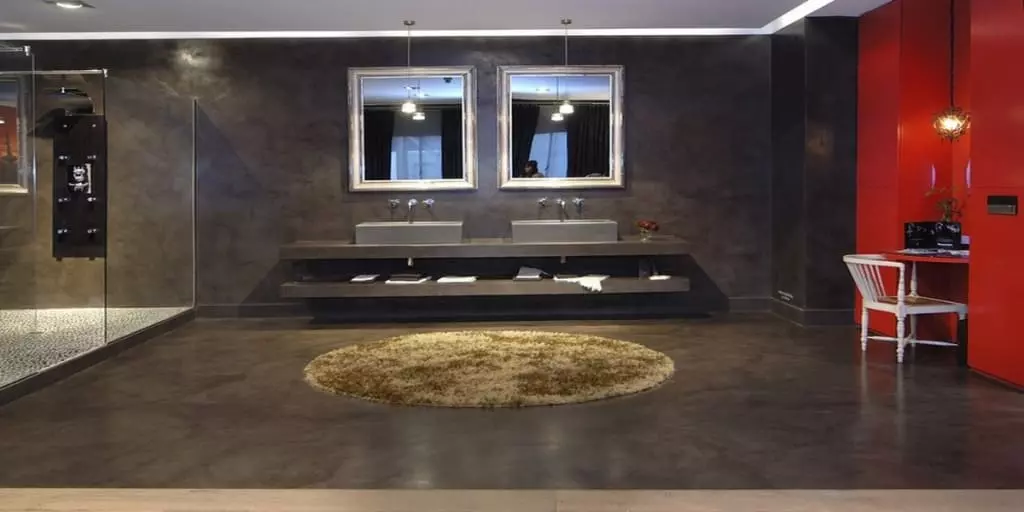 Шлифованный бетон выигрышно смотрится в современных интерьерах благодаря нарочито небрежному внешнему виду. Однако бетон можно использовать далеко не везде из-за большого веса. В таких случаях на помощь приходит микроцемент – этот материал проще в применении и подходит для нанесения на разные основания, от кирпича до гипсокартона.